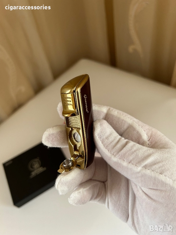 Цвят на запалката: тъмнокафяв (махагонов) с гланц, който на слаба светлина изглежда почти черен. Акценти в златисто – изключително елегантна визия.