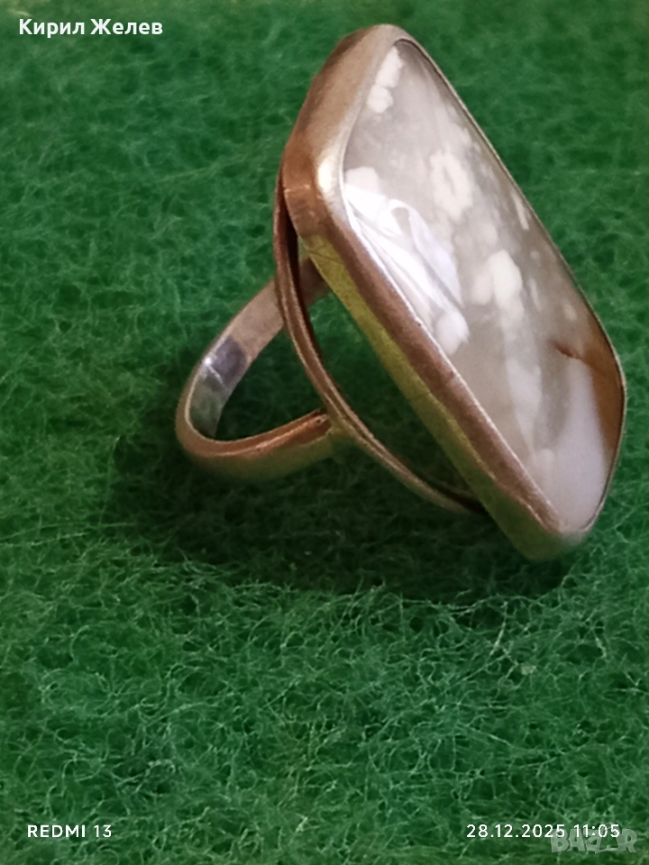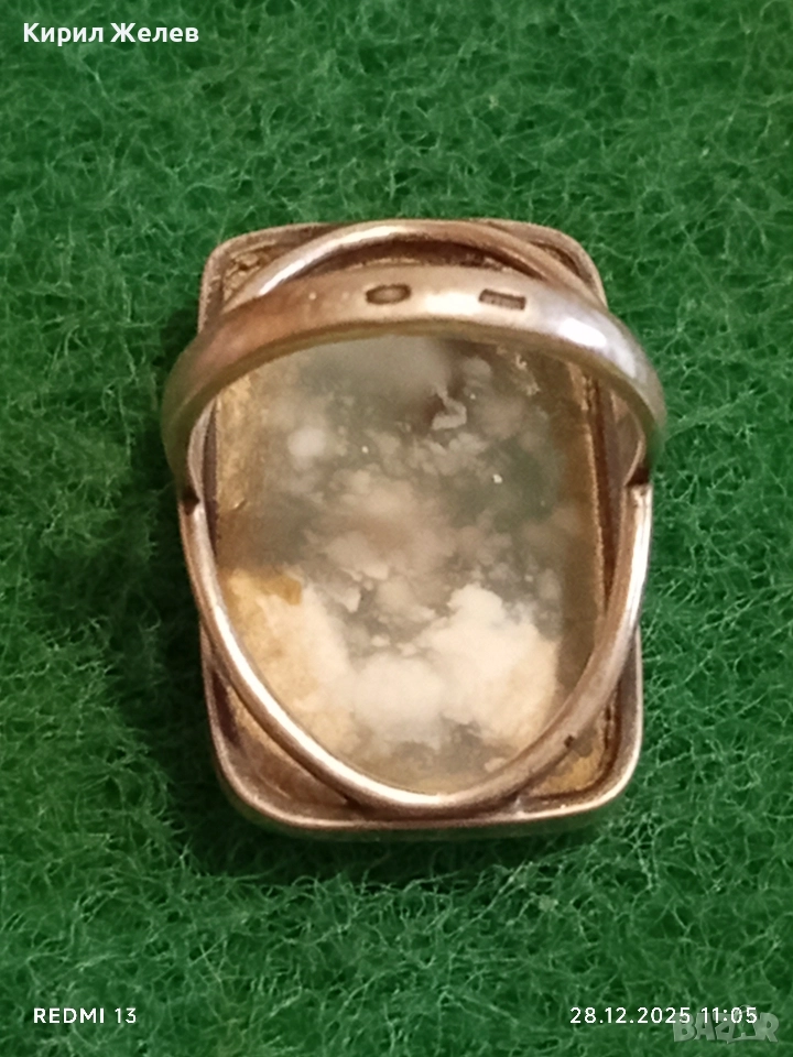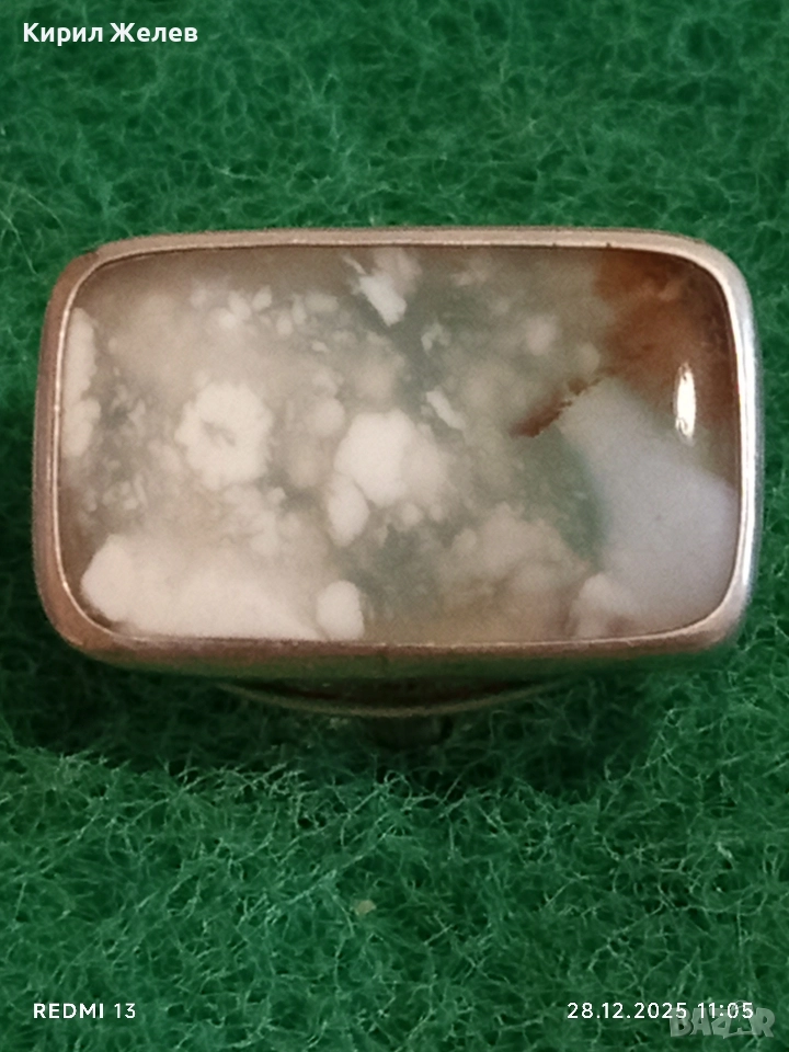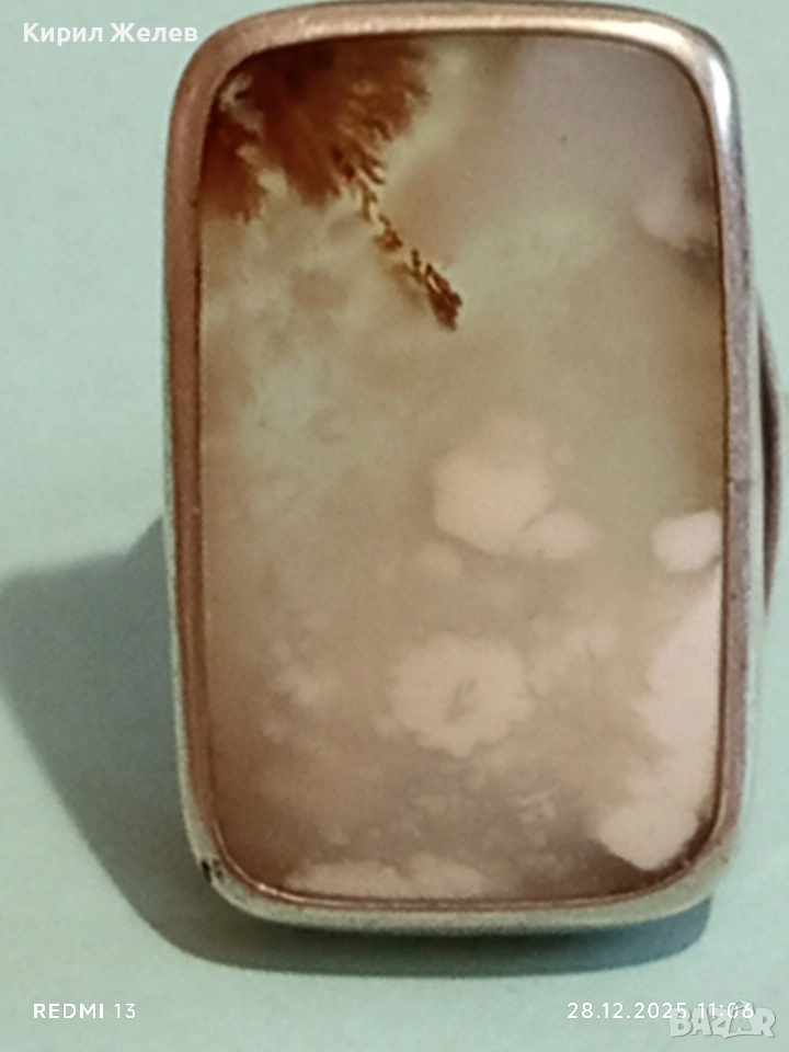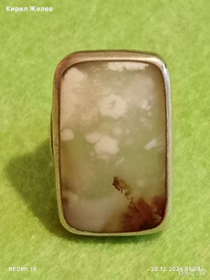 Сребърен пръстен с Дендритен или мъхест Ахат всяко бижу е уникално няма два еднакви камъка 13714