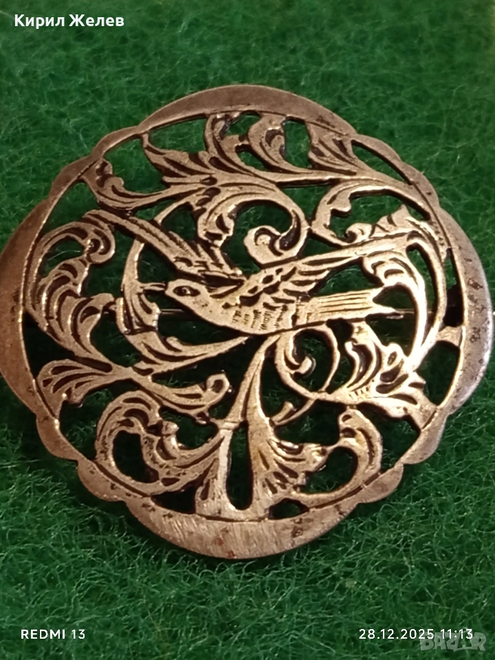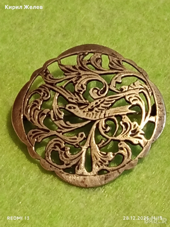 Винтидж сребърна брошка Ар Нуво филигранна изработка 49849