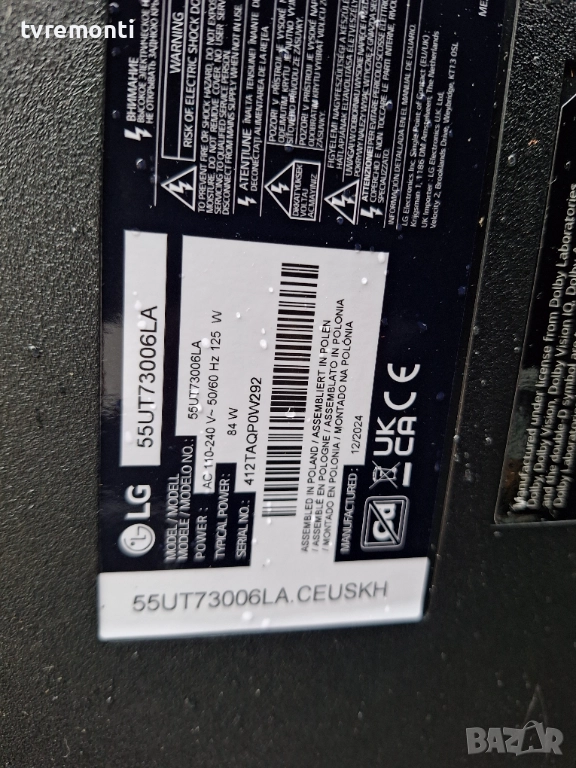 Модел дисплей: LVU550H0DAE E0045 от телевизор LG Модел 55UT73006LA