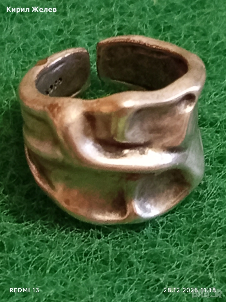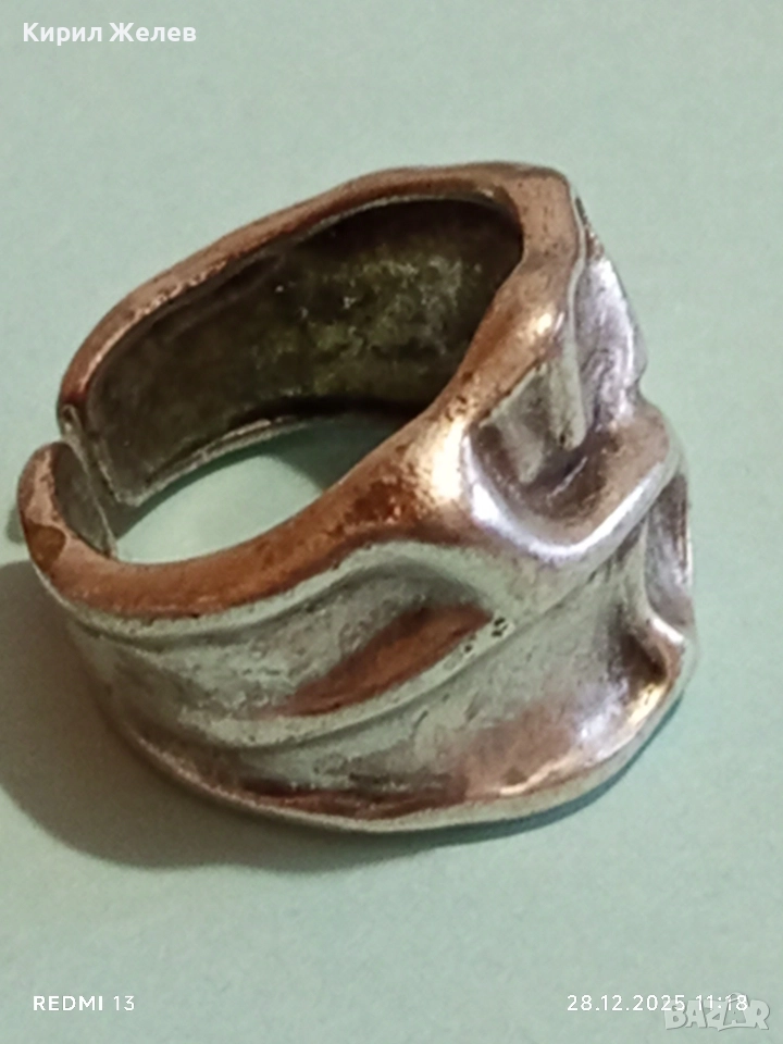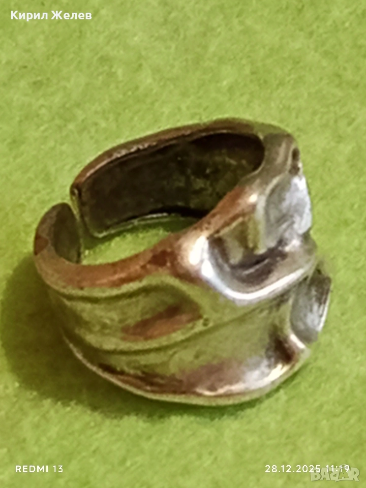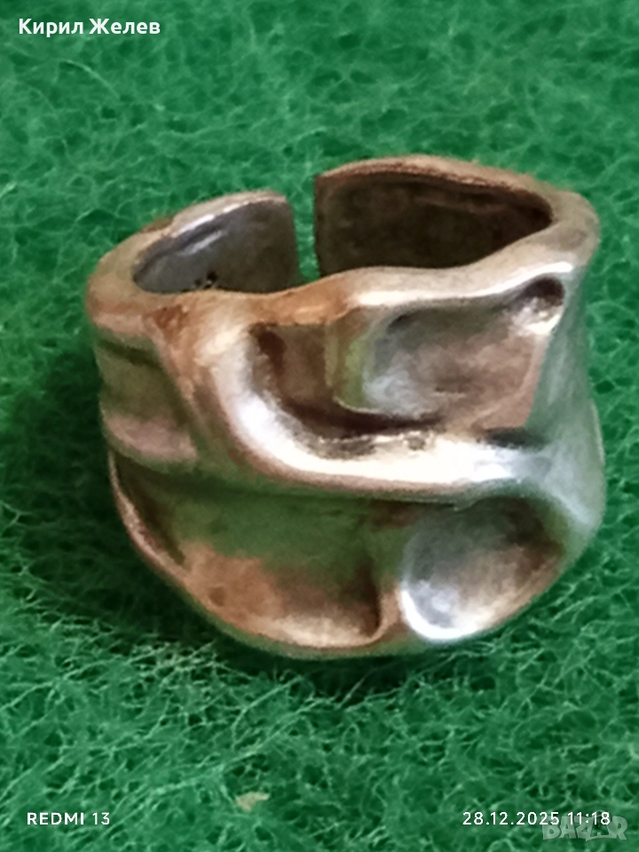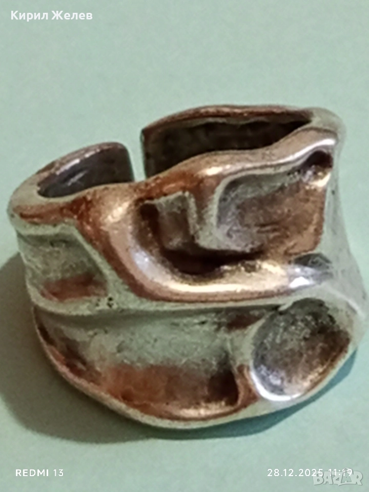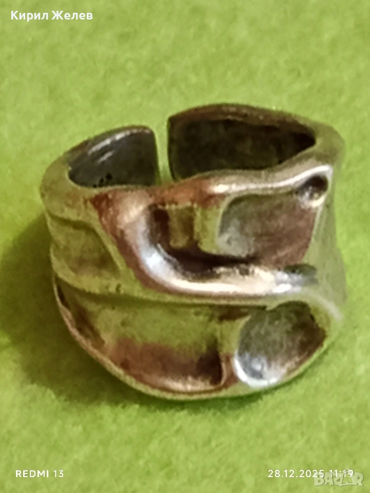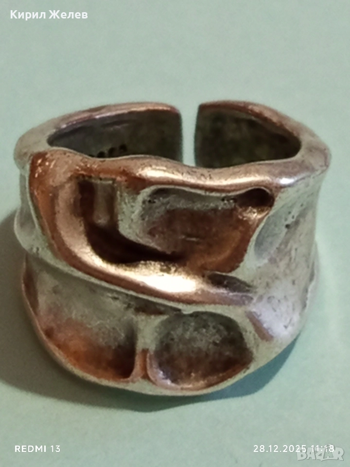 Абстрактен сребърен отворен пръстен склупторен дизайн 52459