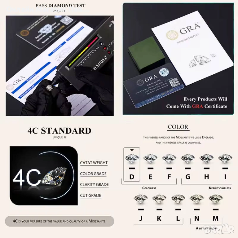 Качество на мойсанита: D цвят, VVS1 чистота, EX шлифовка