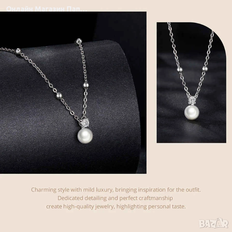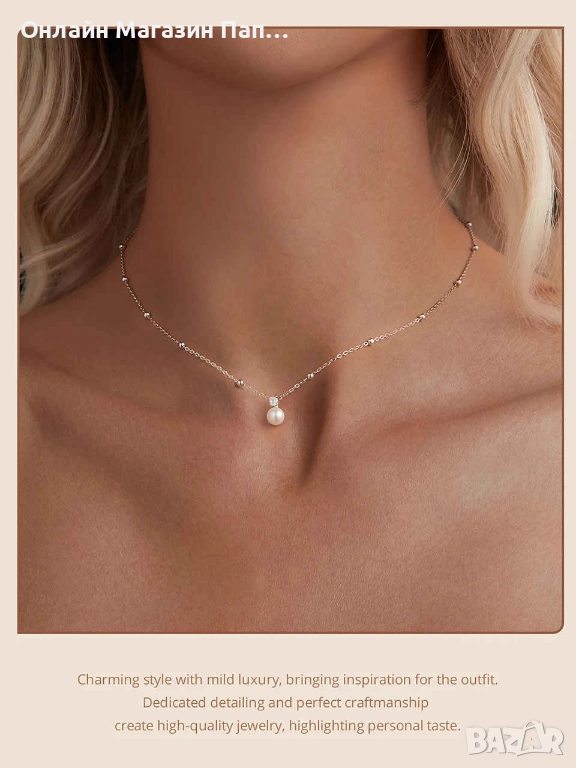 Изработено от 925 сребро с 14к бяло златно покритие, колието гарантира дълготраен блясък и комфорт при носене. Декоративните полирани сребърни мъниста по верижката добавят фин акцент и луксозно усещане.