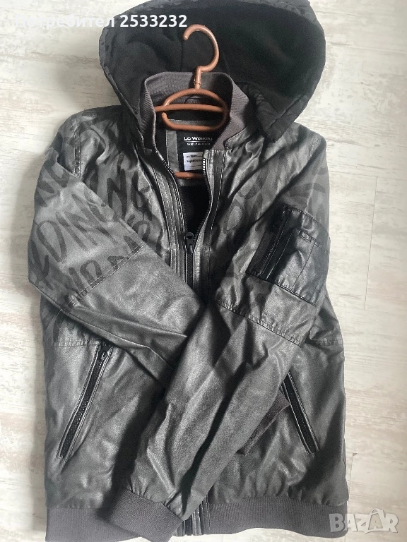 Детска кожено яке с качулка, преходно, подходящо за пролет и есен, без забележки