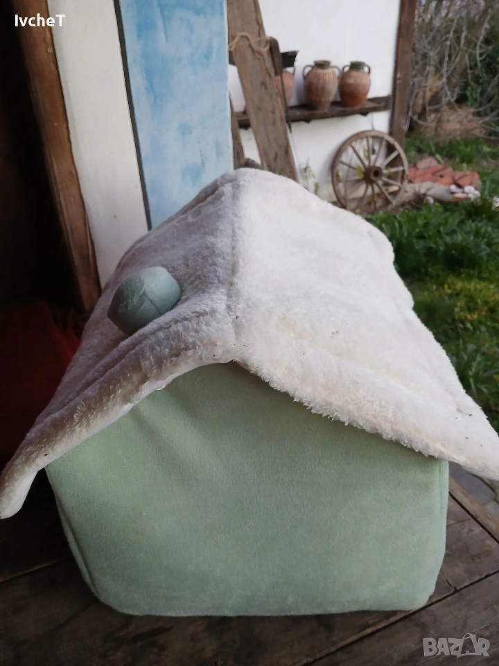 Снежна, зимна къщичка за малки домашни любимци, основно котки. Купих я за моята, но тя не иска да я ползва. Мекичка, с вътрешна възглавнички, която може да се вади.