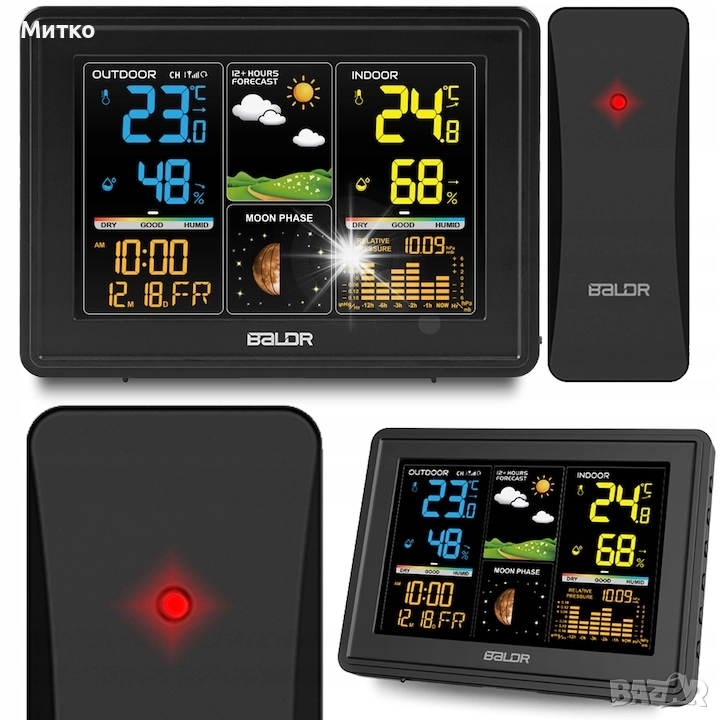 Метеорологична станция Baldr, безжична, хигрометър, термометър, черна, комплект с външен сензор