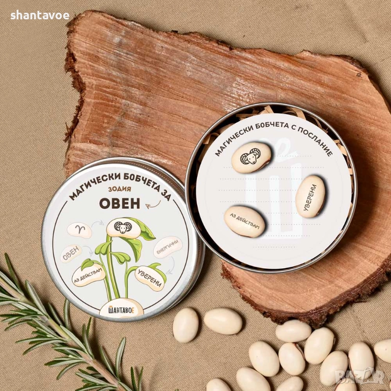 Всяко бобче носи върху себе си символика за конкретния зодиакален знак – от двете страни има гравирано послание / символ, а когато покълне, думите „излизат“ върху разтвореното бобче.