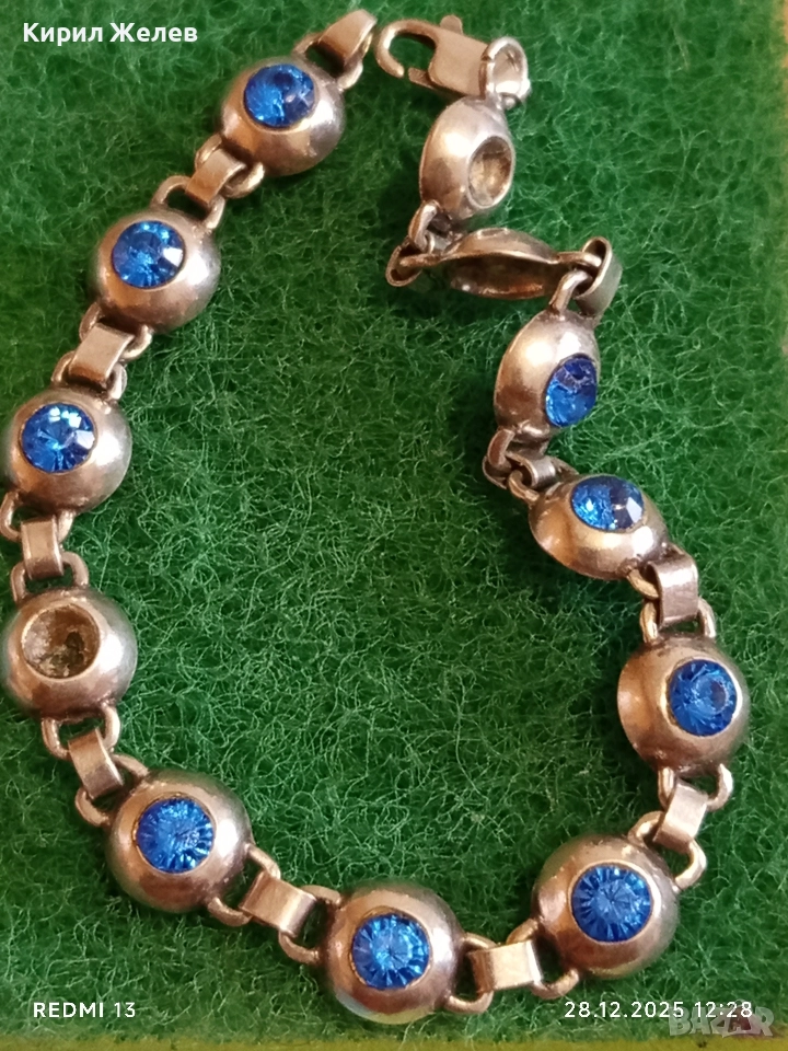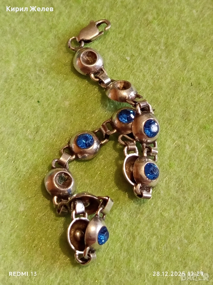 Сребърна тенис гривна инкрустирана с сини камъни майсторска изработка 51813