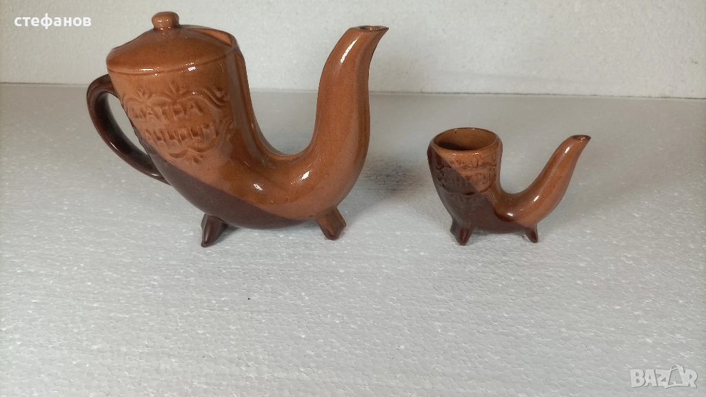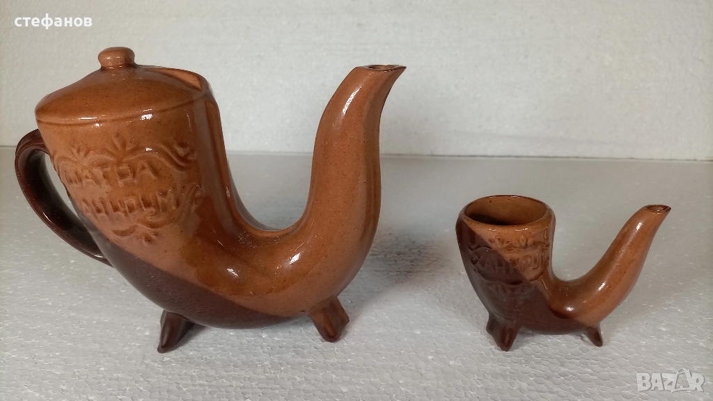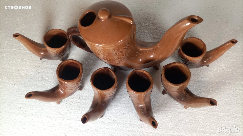 Моля да зачетете внимателно текста към обявата, защото в него е обяснено подробно. На въпроси отговарям тук на съобщение от Вас. Активна ли е обявата може направо да си поръчате харесаното. Комплекта не е ползван и няма забележки. Размери и вместимост на втората снимка. От същия тип имам и за вино. Изпращам добре опаковано по Еконт с опция преглед преди да се плати. Куриерската