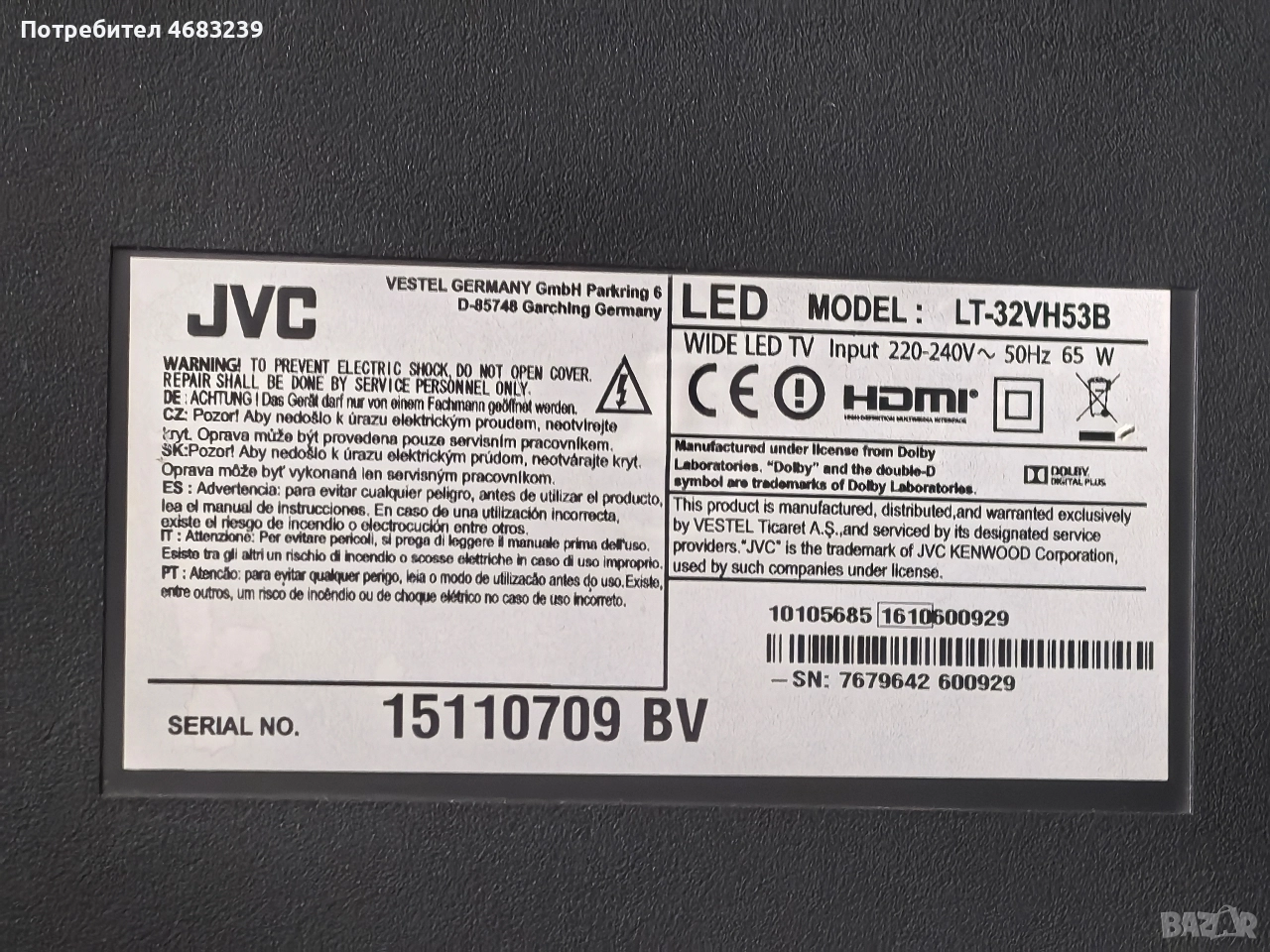 *развален* Телевизор JVC модел LT-32VH53B за части, снимка 1 - Телевизори - 52918732 *развален* Телевизор JVC модел LT-32VH53B за части, снимка 2 - Телевизори - 52918732 *развален* Телевизор JVC модел LT-32VH53B за части, снимка 3 - Телевизори - 52918732 *развален* Телевизор JVC модел LT-32VH53B за части, снимка 4 - Телевизори - 52918732 1/4