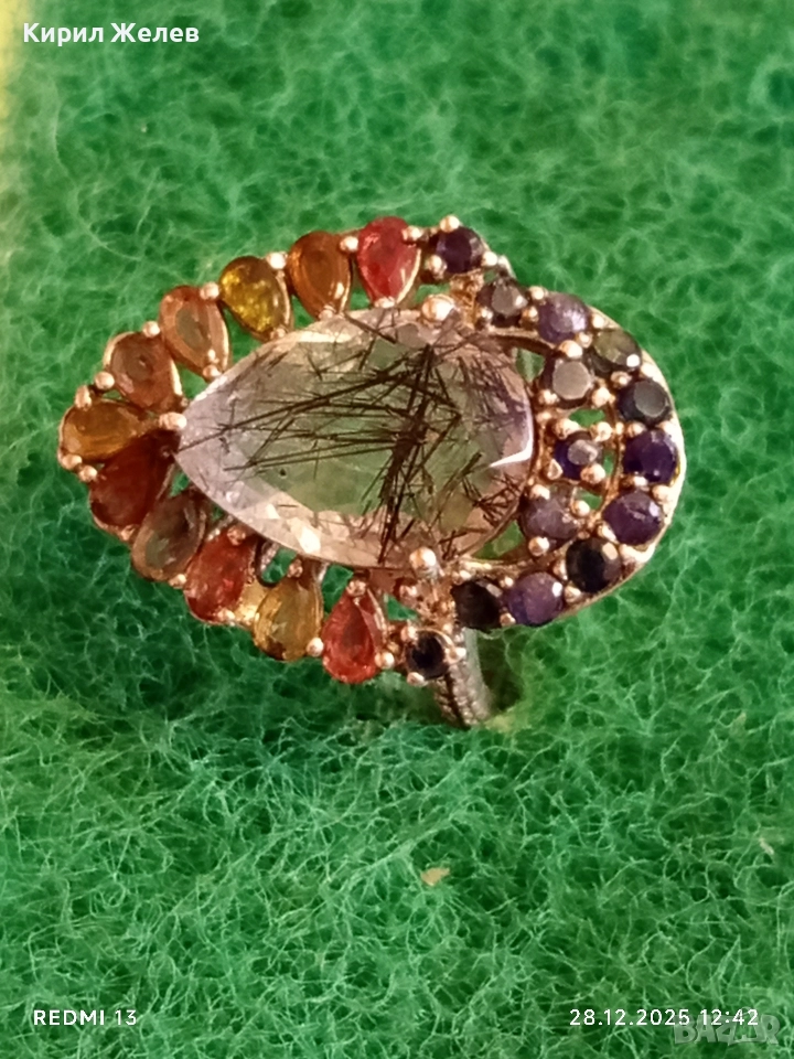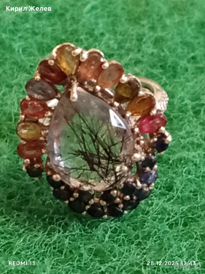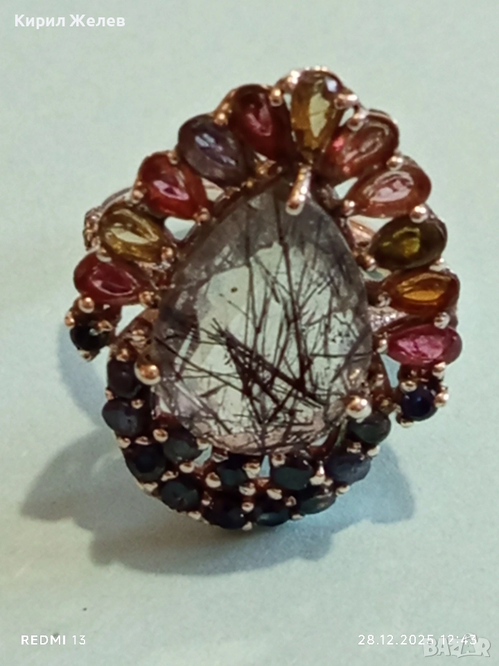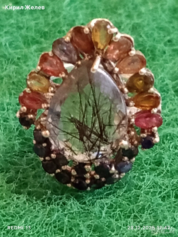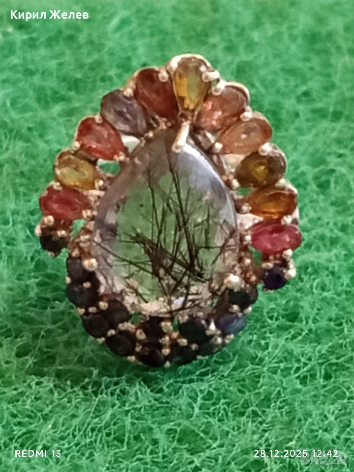 Артистичен сребърен пръстен с ТУРМАЛИНОВ КВАРЦ и многоцветни камъни 51822