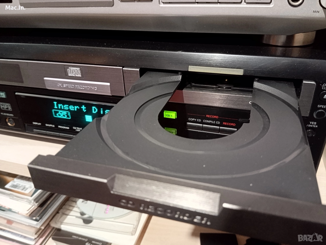 Много добре запазена външно.Свири и записва CD-R . Без дистанционно!
