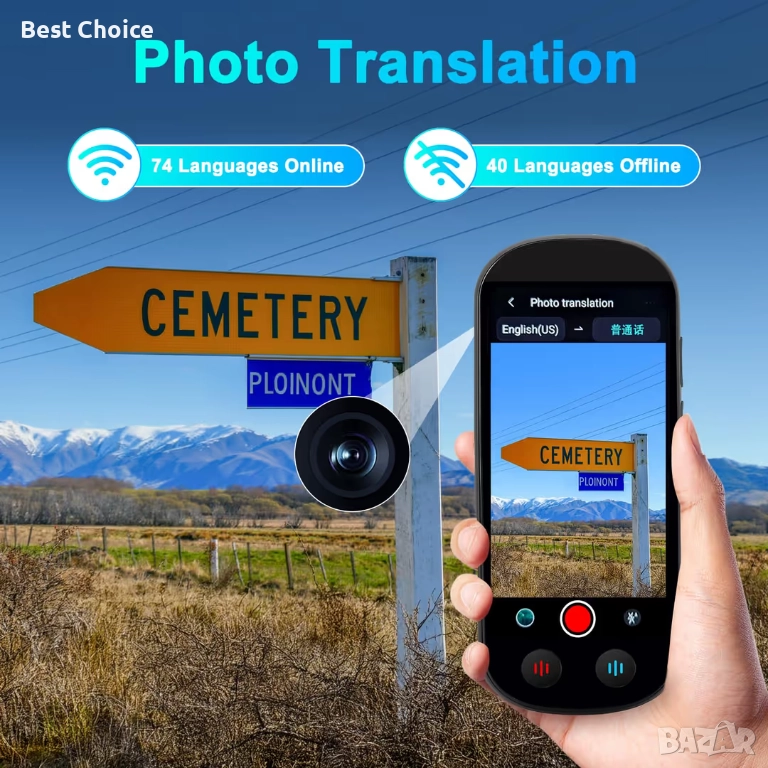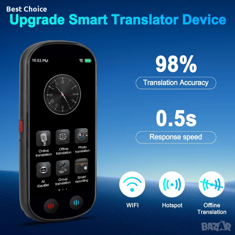 интелигентен гласов преводач с изкуствен интелект (AI), предлагащ различни функции за превод