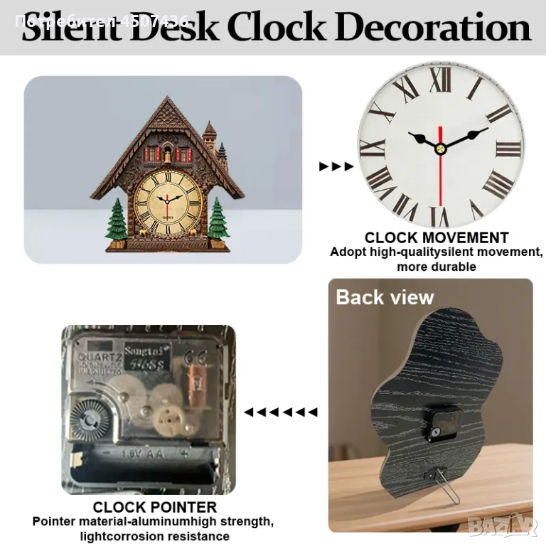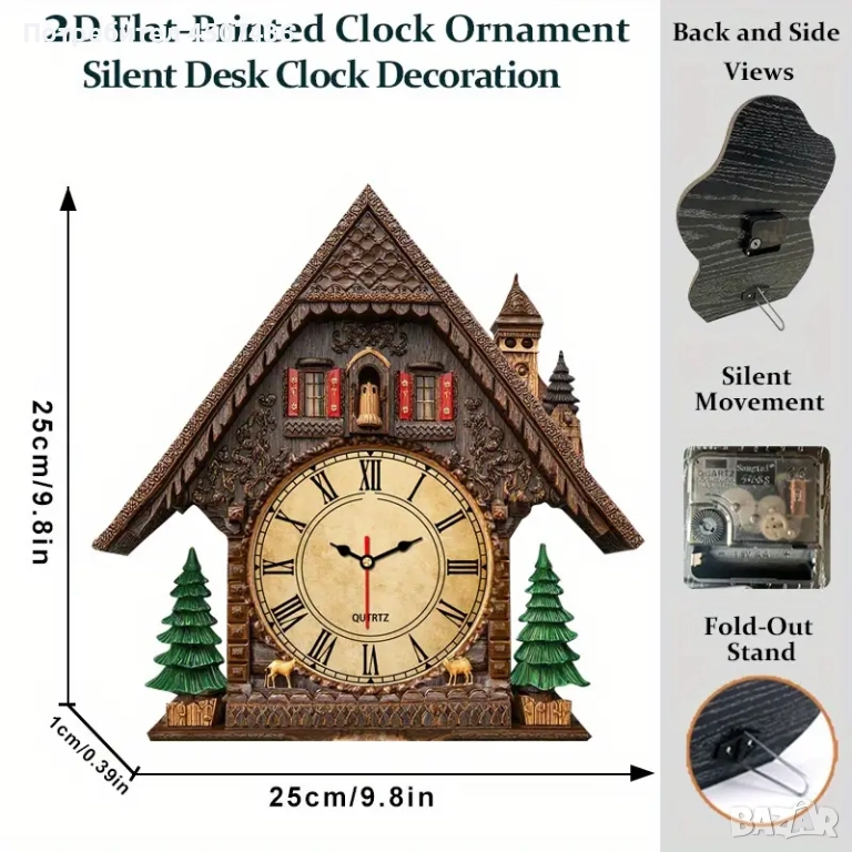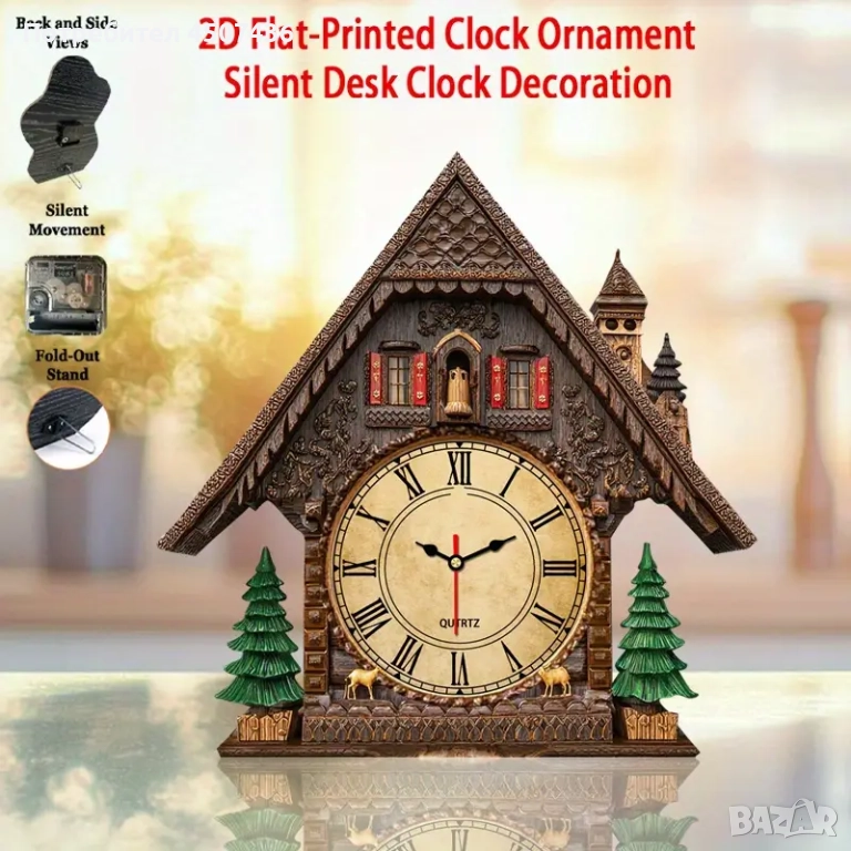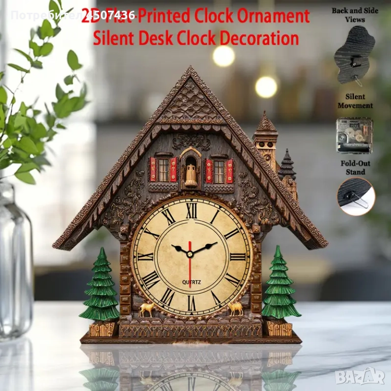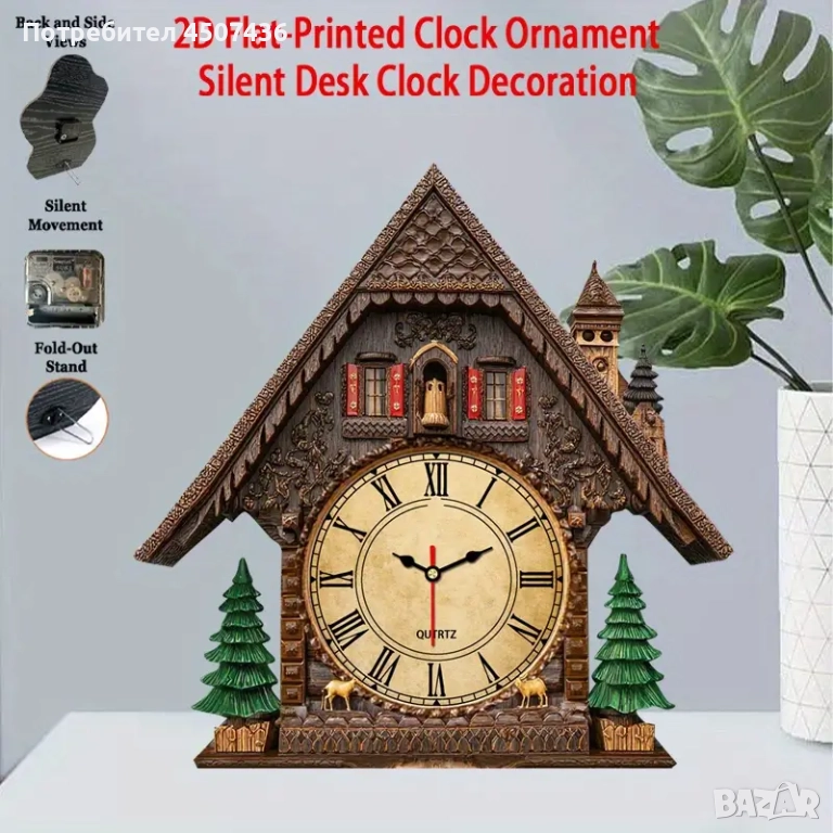 2D Плосък Европейски Стил Дървен Часовник, Тих, Работи на Батерии → Обява 52919147