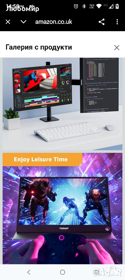 Преносим монитор Yodoit 14", 1920×1080 FHD екран IPS дисплей с USB Type C вградени