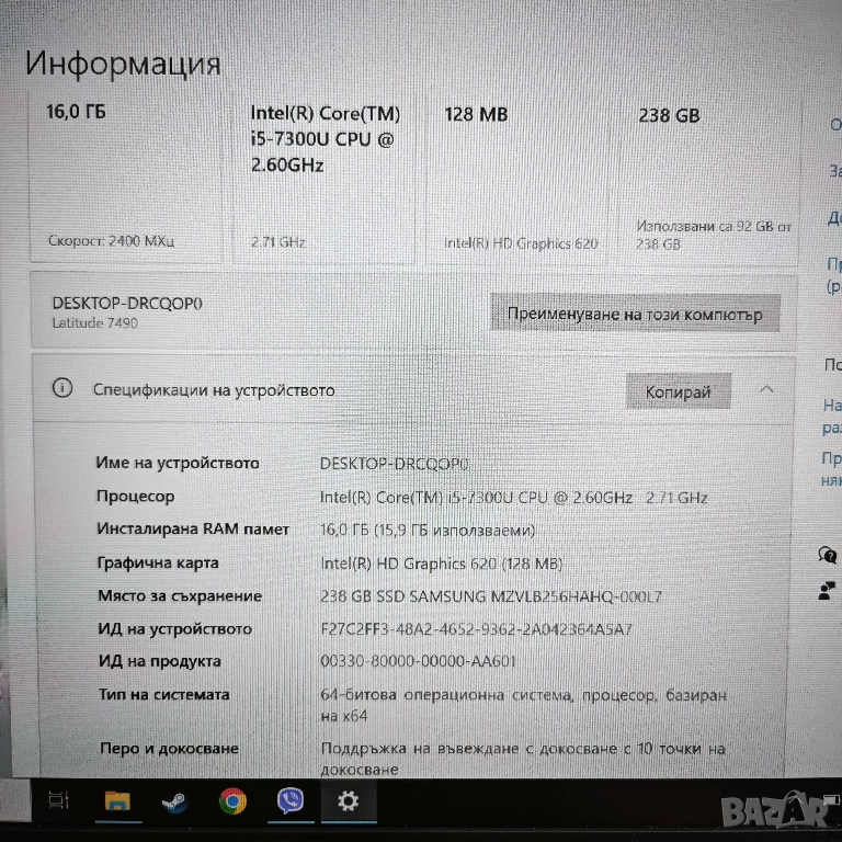 Лаптоп Dell Latitude 7490 – i5 / 16 GB RAM / 256 GB SSD / Touch → Обява 52920347