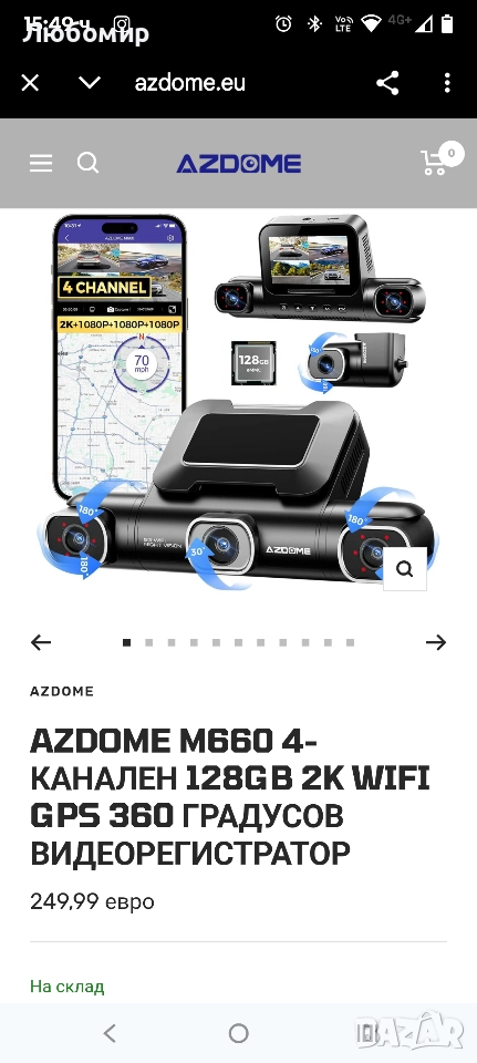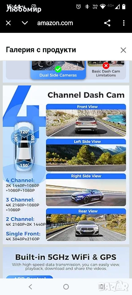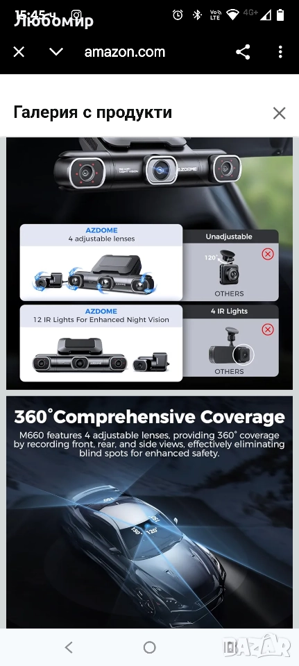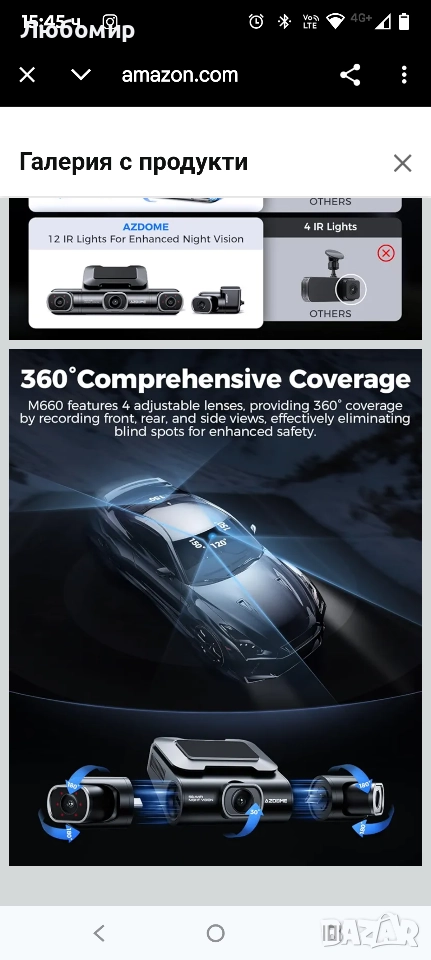 AZDOME 360° 4-канална видеорегистратор за автомобили отпред и отзад, вградена 128GB eMMC, 2K+1080P*3 видеорегистратор, ляв и десен, гласово управление, 5G WiFi видеорегистратор за автомобили с 4 регулируеми обектива, IR нощно виждане, M660.4 РЕГУЛИРУЕМИ ОБЕКТИВА: Персонализирайте ъглите на запис, като регулирате посоката на обективите. M660 360 видеорегистраторът заснема ясни кадри отпред, отзад и от двете страни на автомобила на водача. Видеорегистраторът AZDOME предоставя пълни доказателства за инциденти като вандализъм, кражба, ожулвания при паркиране и застрахователни измами, гарантирайки, че водачът е защитен във всяка ситуация.