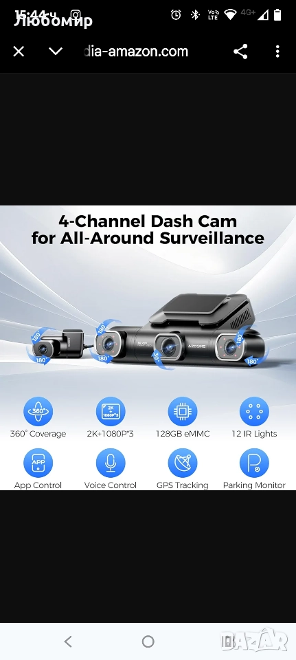 AZDOME 360° 4-канална видеорегистратор за автомобили отпред и отзад, вградена 128GB eMMC,
