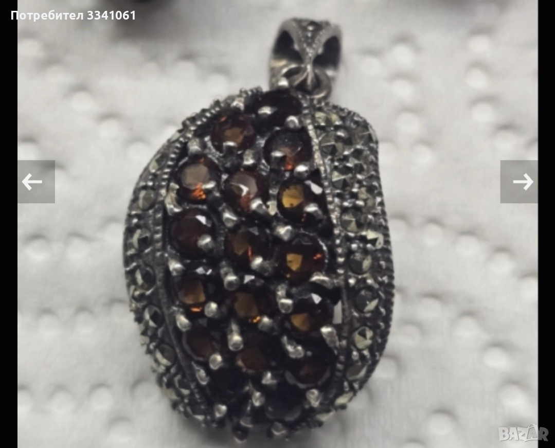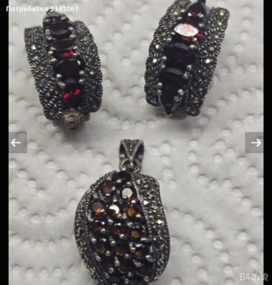 Стара сребърна висулка и обеци с Гранати и Марказити