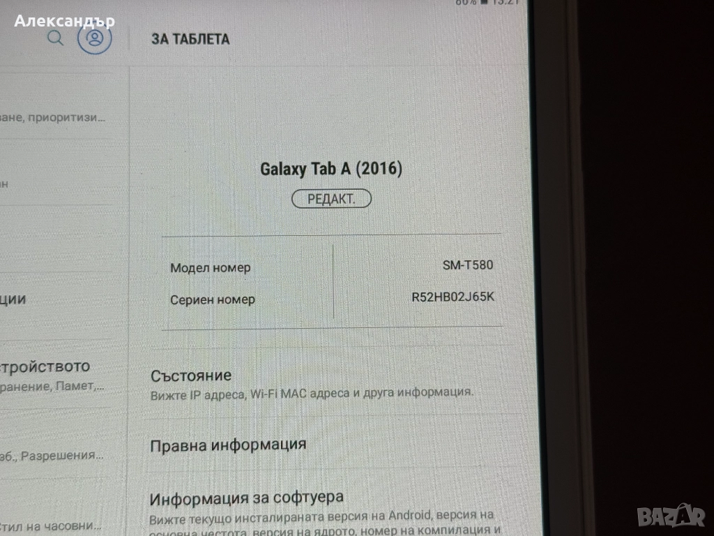 Таблет Samsung Galaxy Tab A (2016) - SM-T580 → Обява 52921025