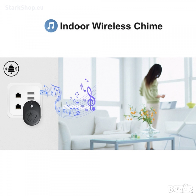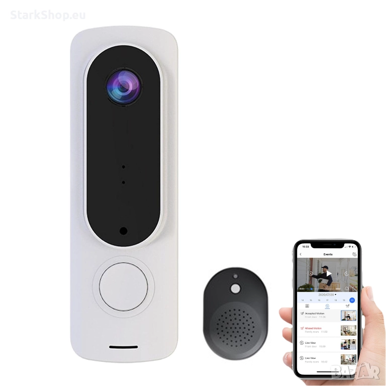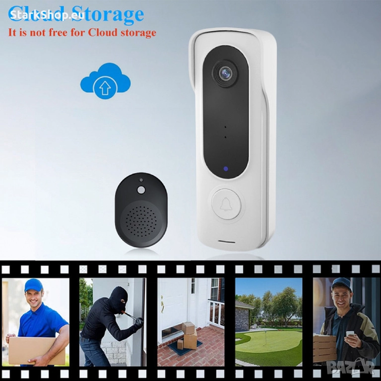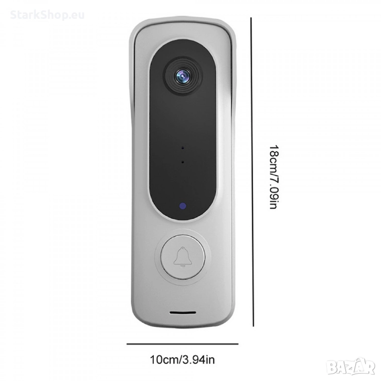 Интелигентният видео звънец ви позволява да поддържате връзка с посетителите на входната ви врата. Получавате известие на телефона, когато някой дойде на вратата ви. Има двупосочна комуникация позволявайки ви да чувате и говорите с посетителите си.