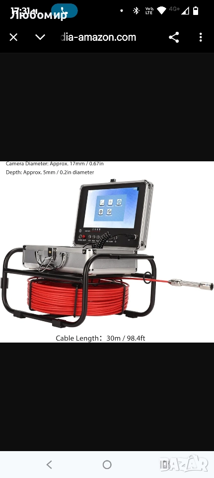 Мостренна без опаковка...Не държи батерията.Канализационна камера, камера за инспекция на канализация, камера за тръби, пеноскопска камера за тръби, AHD 720P, 8 регулируеми LED светлини, 9-инчов LCD екран, диаметър 17 мм, 100-240V (F951DC17-30M EU щепсел).Изживейте върха на яркостта с нашата канализационна камера. С резолюция от 720P и 1/3 CMOS сензор, тя осигурява плавно, стабилно и кристално чисто изображение.