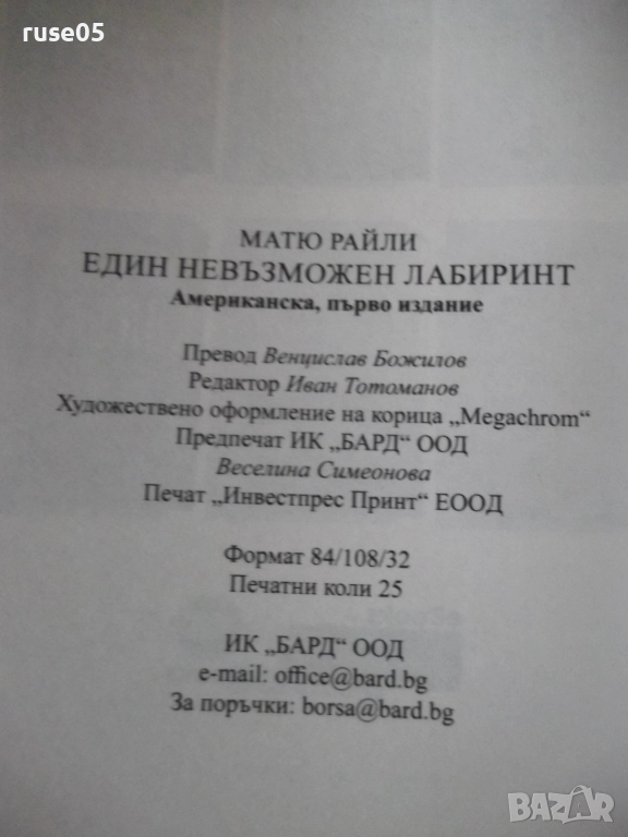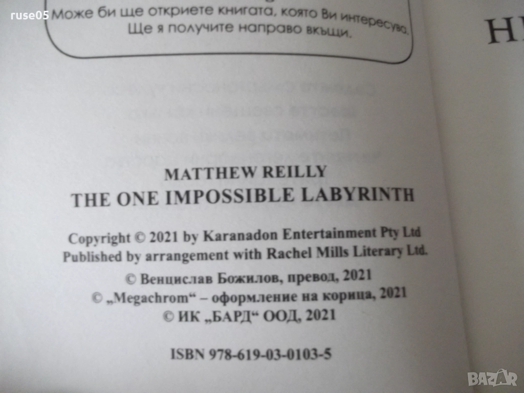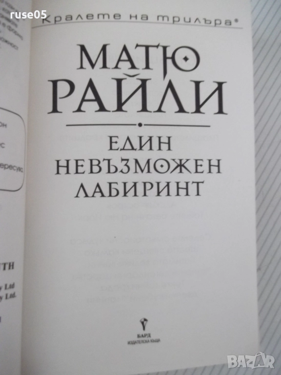 Книга "Един невъзможен лабиринт - Матю Райли" - 400 стр. → Обява 52921306