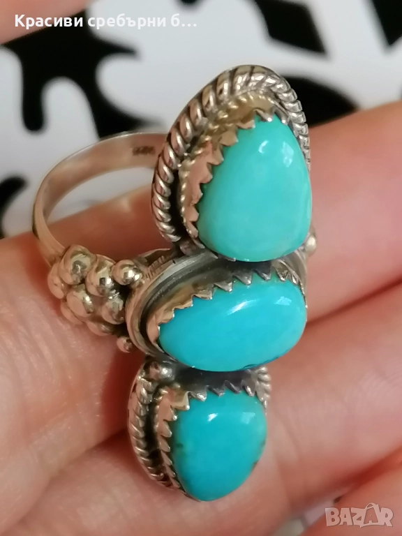 Масивен сребърен пръстен с тюркоаз → Обява 52921321