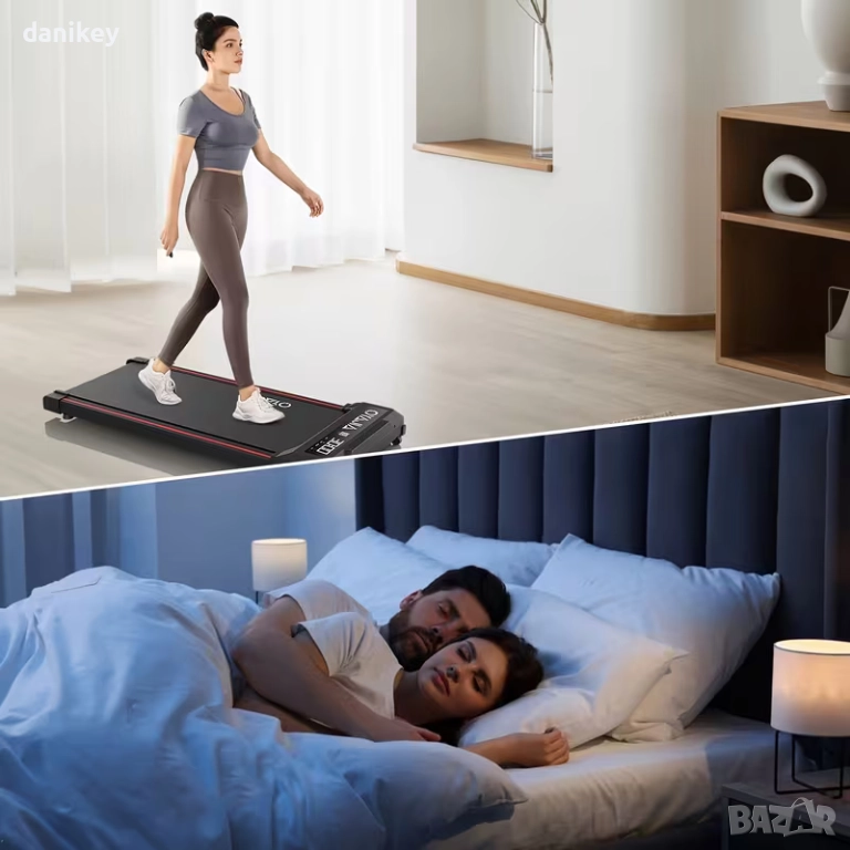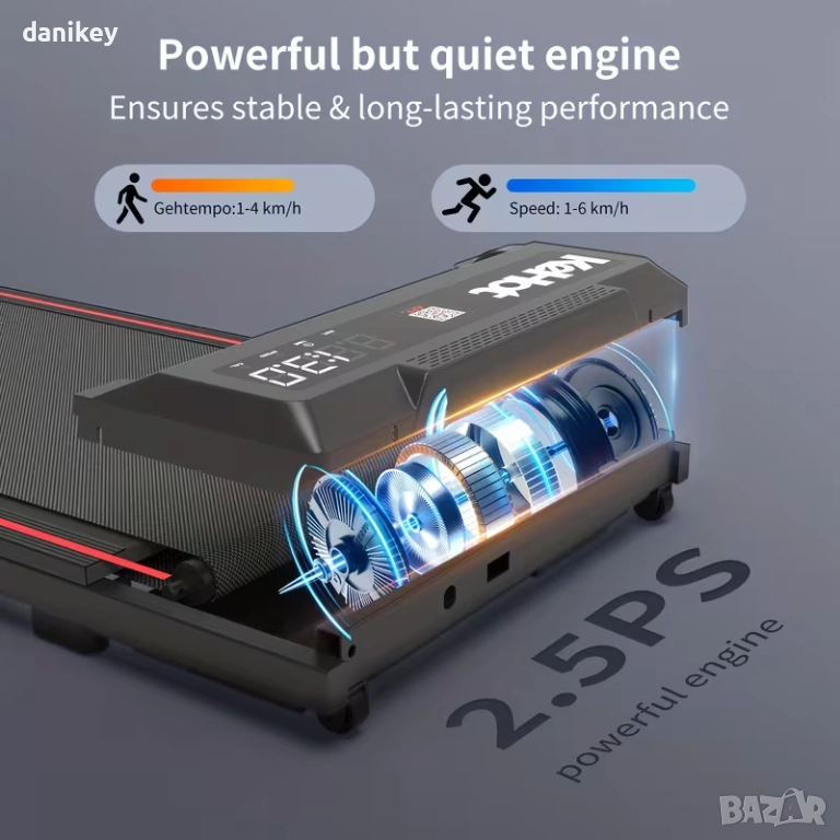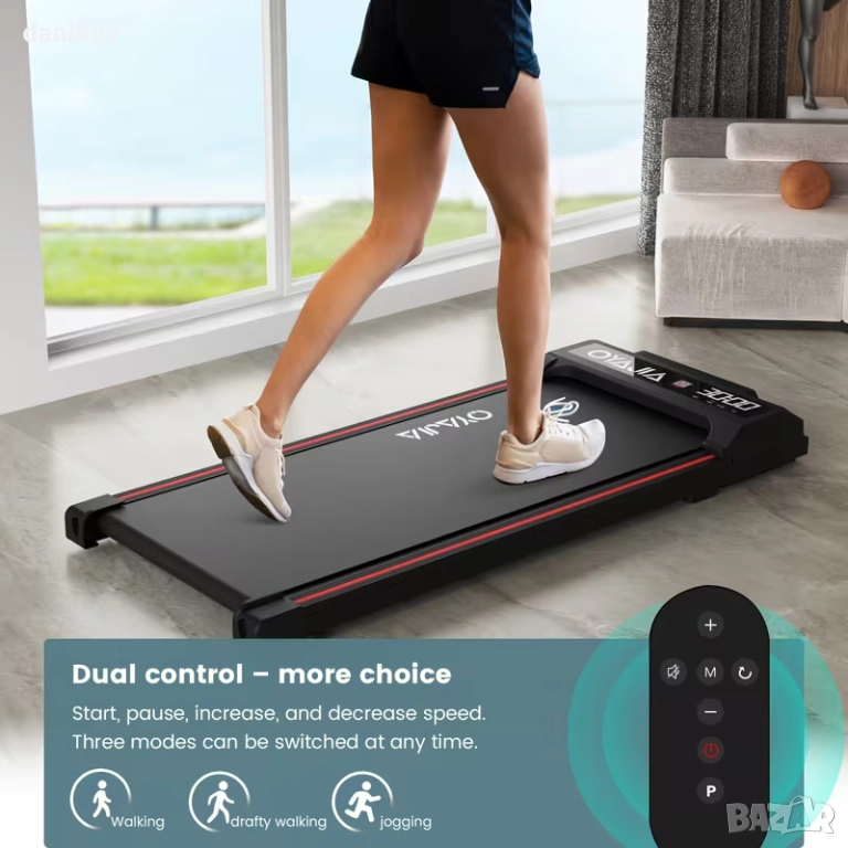 Kомпактна електрическа пътека за ходене OYAJIA / KEHOT (без ръкохватки). Модел тип walking pad, подходящ за използване у дома или в офис, включително под бюро.