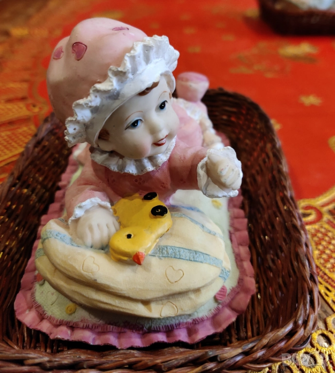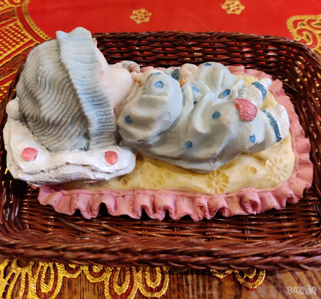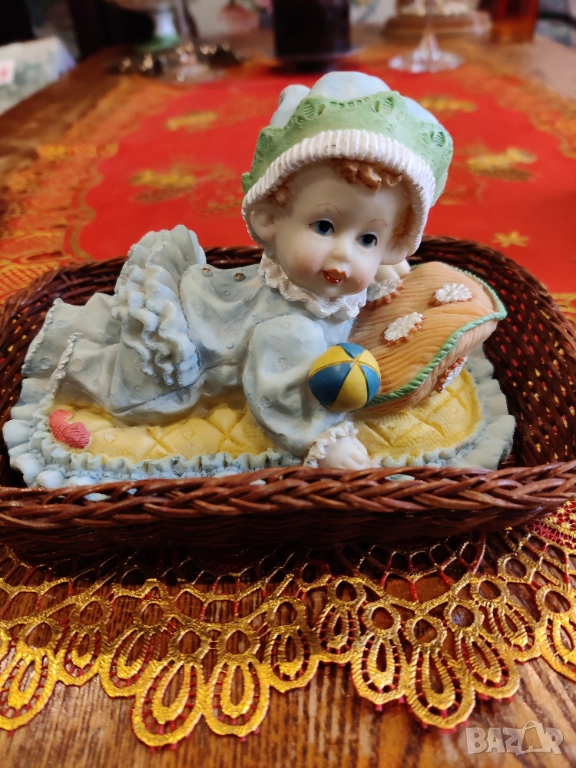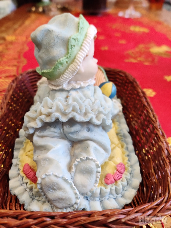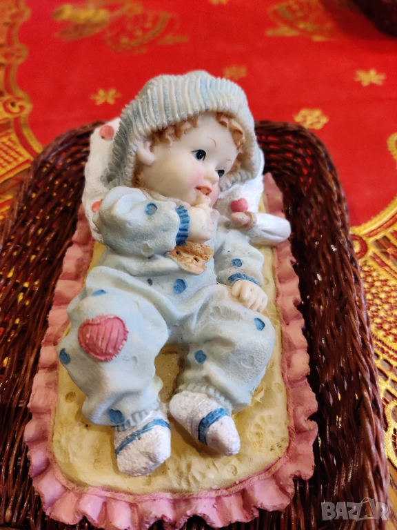 Бебе в пакетче. Височина 7-10 см. ширина 16.5 см.