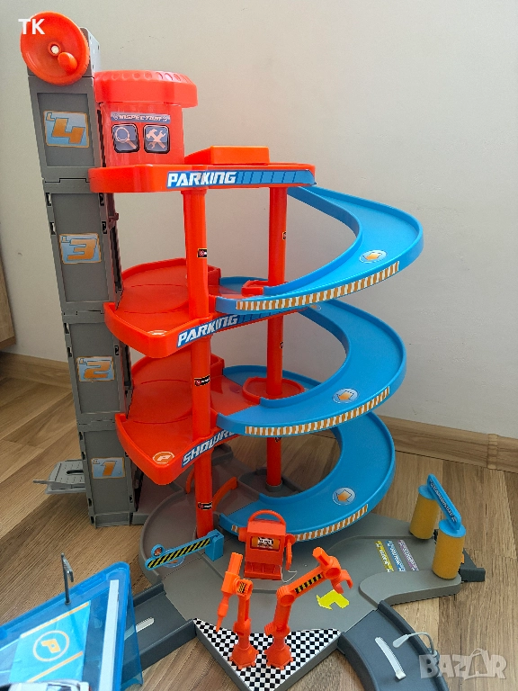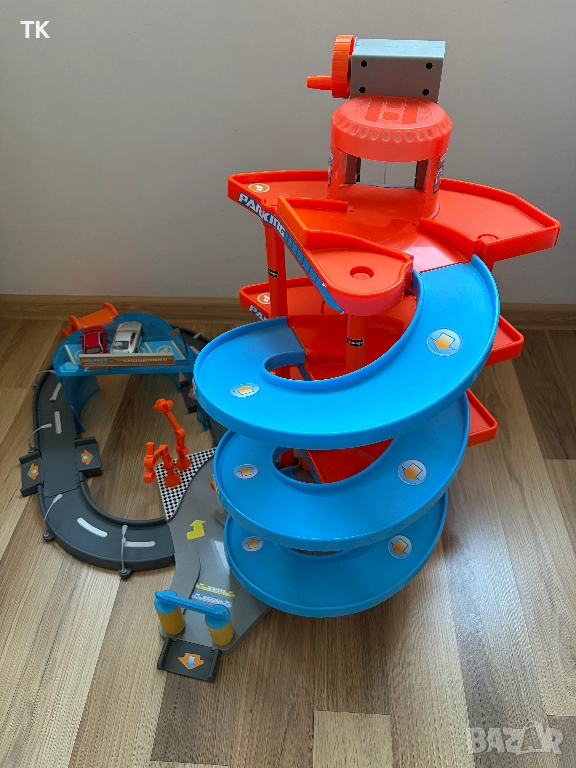 Продавам BBurago Mega Dealer Showroom Комплект за паркиране, 4 нива, 2 автомобила включени, 43.5x47x14cm.