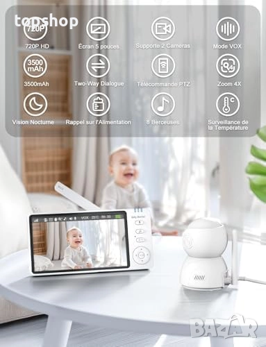 Нов OBVHNUA Бебефон 5 инча 720P IPS HD цифрово увеличение двупосочен аудио VOX режим нощно виждане