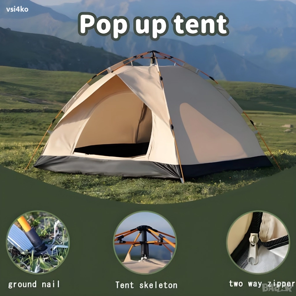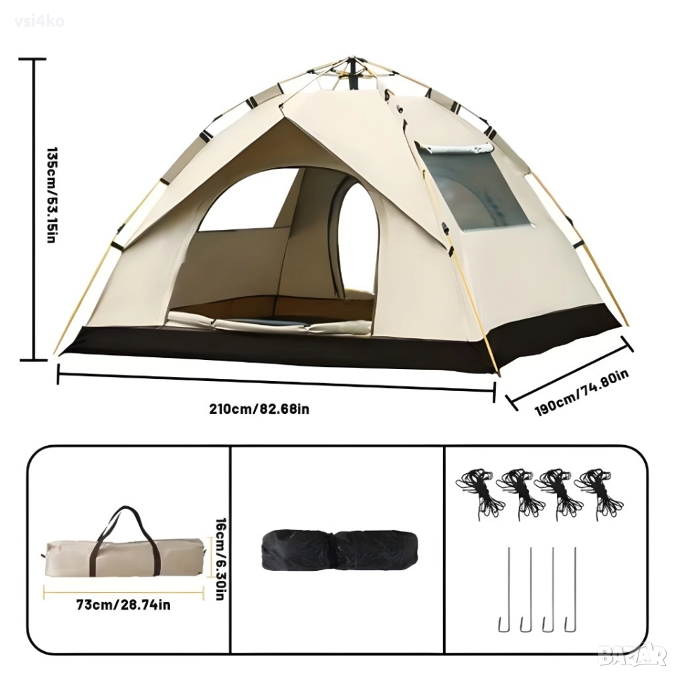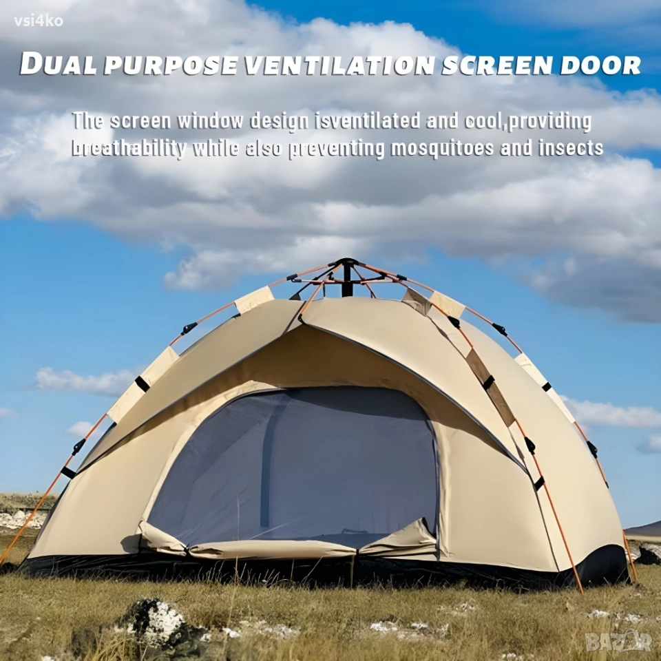 Лека, удобна и бързо сгъваща се палатка, създадена за комфортен къмпинг за 3–4 души. Идеална за семейни излети, фестивали или почивка на открито, когато искате лесно разпъване, добра вентилация и достатъчно пространство за двама възрастни с две деца или трима–четирима приятели.