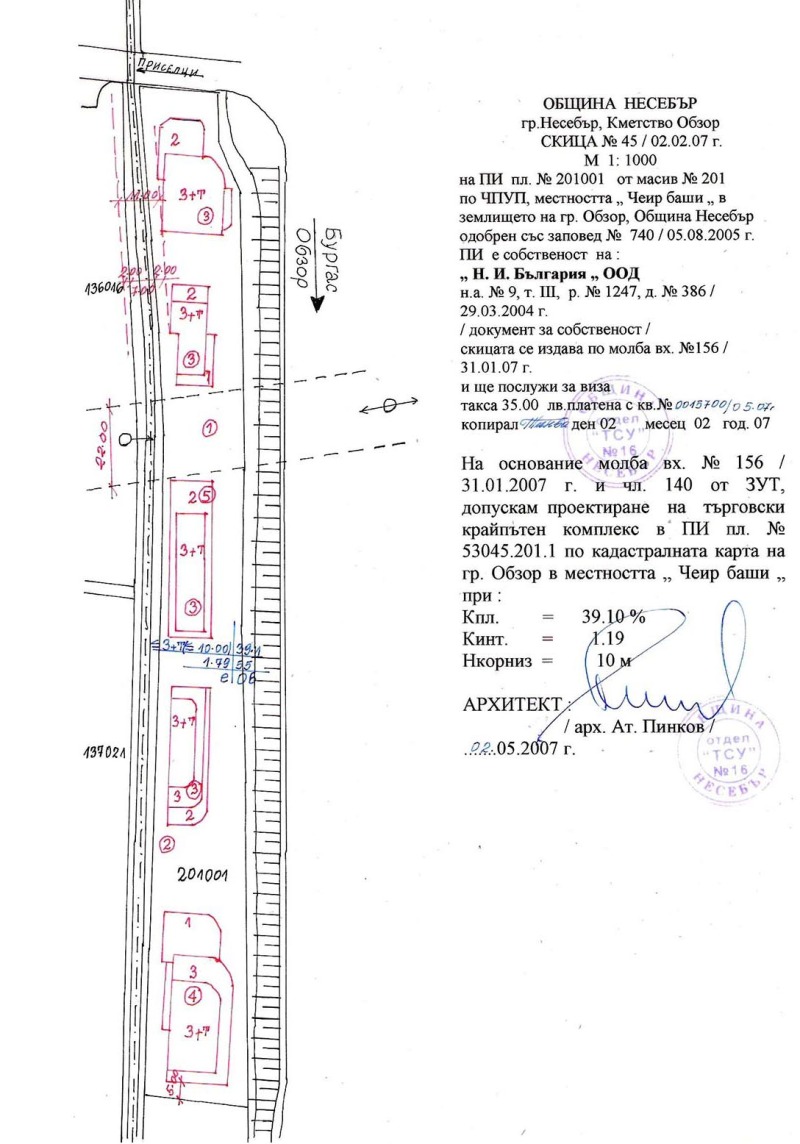 Проведена регулация 2008 г. с одобрен ПУП.