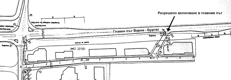 до кръстовището на главния път Варна Бургас