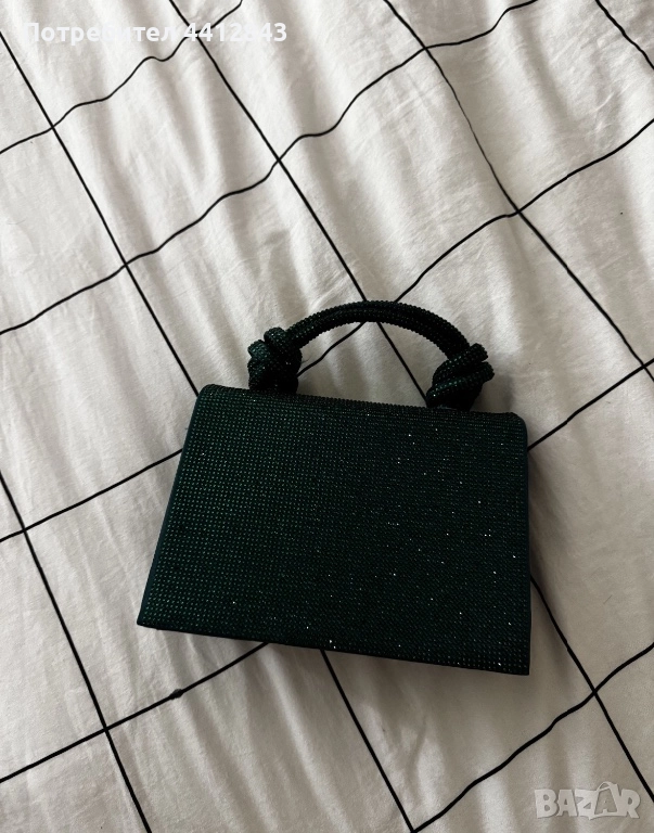 Чантата на Zara е нова и в блестящ зелен цвят. Подходяща за жени, които обичат модните аксесоари.