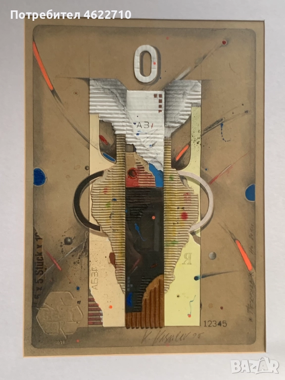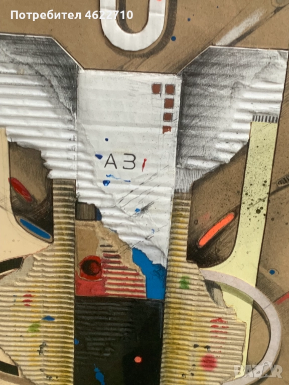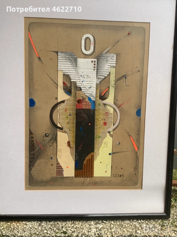 картина абстракция смесена техника колаж с размери 46см на 58см с рамката и размер само на картината 30см на 42см вижте снимките