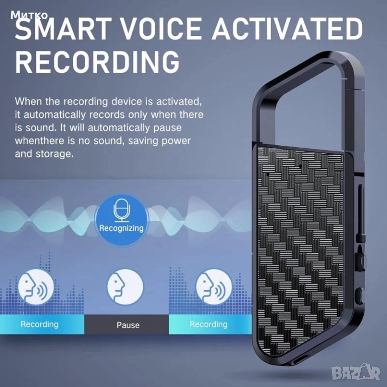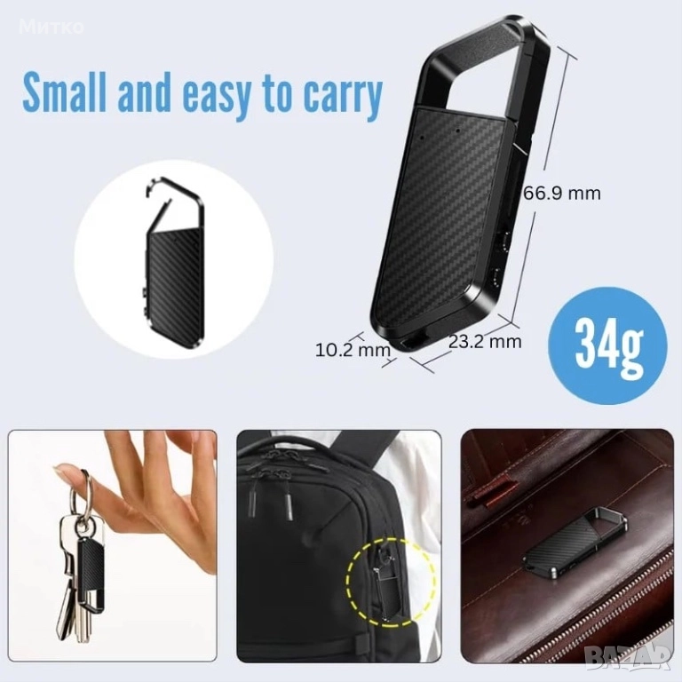 Устройството може да се закачи на ключовете ви или лесно да се закрепи за якето или чантата и да записвате звук, когато имате нужда от него. Идеално за бележки, срещи, интервюта и др. То може да се превърне и в чудесен подарък за приятели.