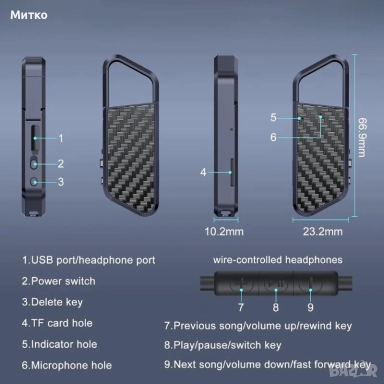 Това малко устройство, дискретно замаскирано като ключодържател, е идеалният инструмент за дискретни и висококачествени записи. С живот на батерията до 23 часа и безупречно качество на звука винаги ще сте готови да уловите всеки детайл. Освен това елегантният и компактен дизайн означава, че можете да го носите навсякъде, без да предизвиквате подозрения.