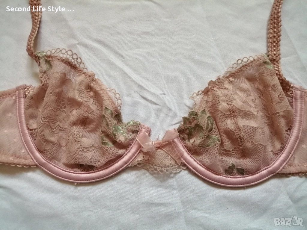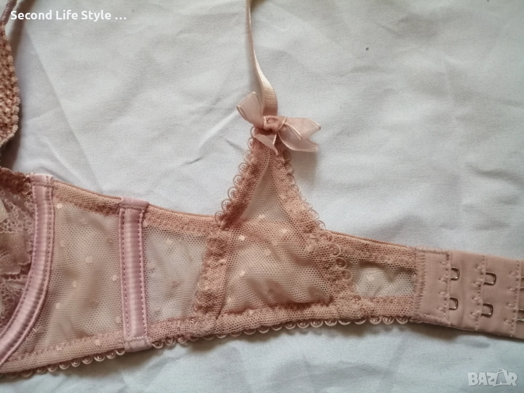 Моделът е с нежни прозрачни дантелени чашки, панделки и детайли, които придават стилен и женствен акцент.