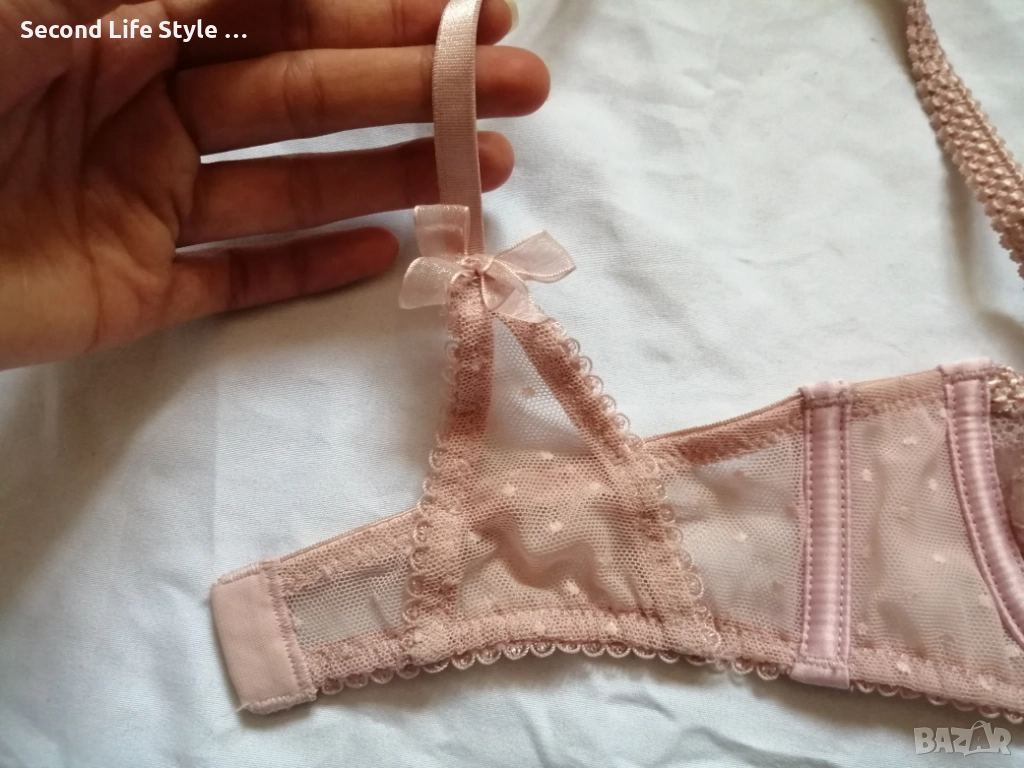 70А кокетен прозрачен дантелен сутиен в розов цвят