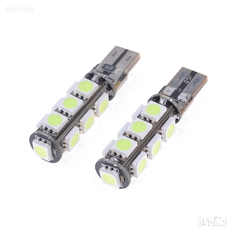 LED Диодни крушки за габарити, Т10 W5W, 13 SMD, 12V, син цвят на светлина, Canbus - Error free , Без грешки