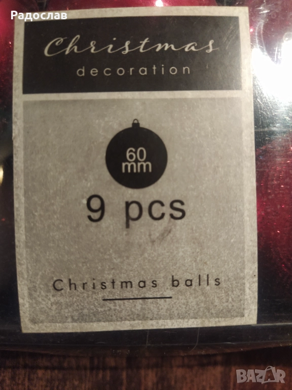 комплект декоративни коледни топки за елха 9 броя диаметър : 6 см