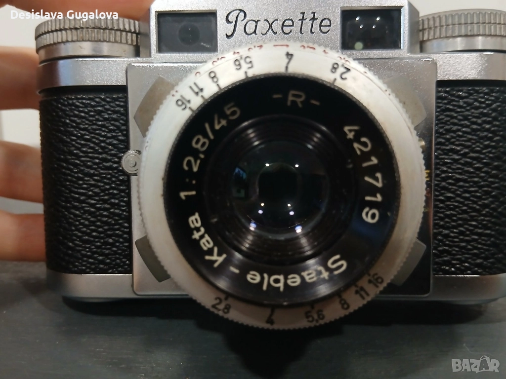 Произведен в Германия през 50-те години на миналия век. Повече информация: https://camera-wiki.org/wiki/Paxette Подходящ е за: - колекционери на фотографска техника - реквизит за филми, театър или фотосесии - интериорна декорация (студио, заведение, дом) Не е тестван с филм – продава се като колекционерски / декоративен артикул. Лично предаване или доставка с куриер.