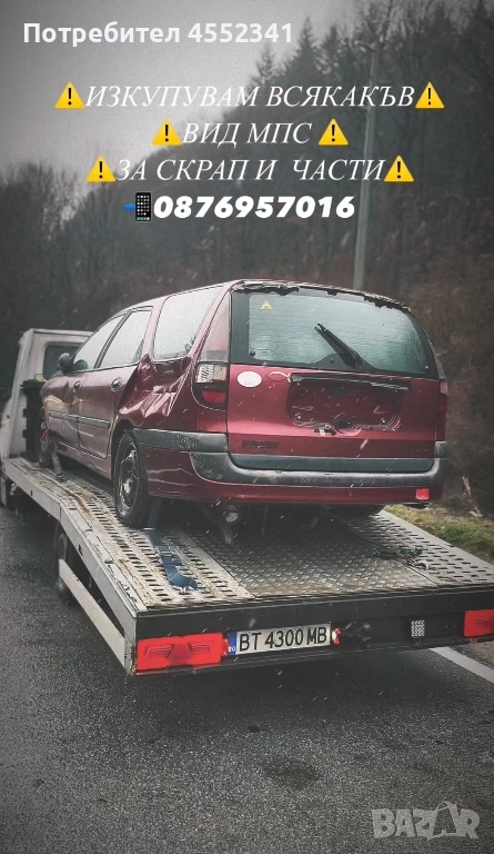 ИЗКУПУВАМ автомобили и бусове за скрап и за части, снимка 1 - Автомобили и джипове - 52922673 ИЗКУПУВАМ автомобили и бусове за скрап и за части, снимка 2 - Автомобили и джипове - 52922673 ИЗКУПУВАМ автомобили и бусове за скрап и за части, снимка 3 - Автомобили и джипове - 52922673 ИЗКУПУВАМ автомобили и бусове за скрап и за части, снимка 4 - Автомобили и джипове - 52922673 1/4