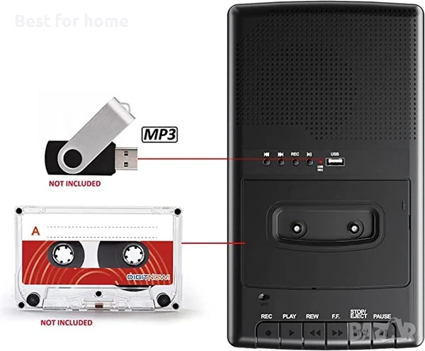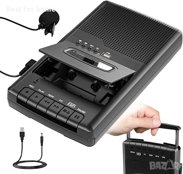 Преносим касетофон, касетофон със самостоятелен микрофон, Walkman касетофон, цифров конвертор за касети към USB флаш диск, вграден високоговорител/прибираща се дръжка/3,5 мм жак за слушалки