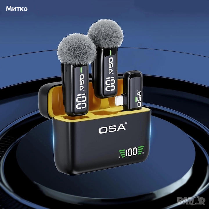 Комплект от 2 професионални безжични микрофона OSA K6 с калъф за зареждане, безжичен, USB Type C, ви