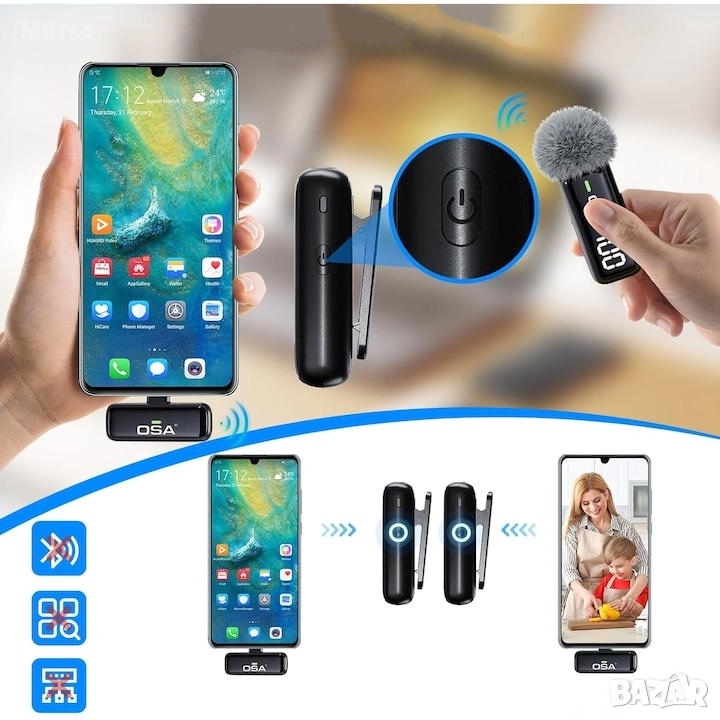 Оборудван с Type-C интерфейс, съвместим с всички Type-C интерфейсни системи (включително iPhone 15), микрофонът е идеален за vlogging, подкастинг, речи и онлайн видео уроци. С обхват на предаване до 20 м и 2,4 GHz технология, безжичните микрофони осигуряват перфектно качество на звука, независимо къде се намирате.