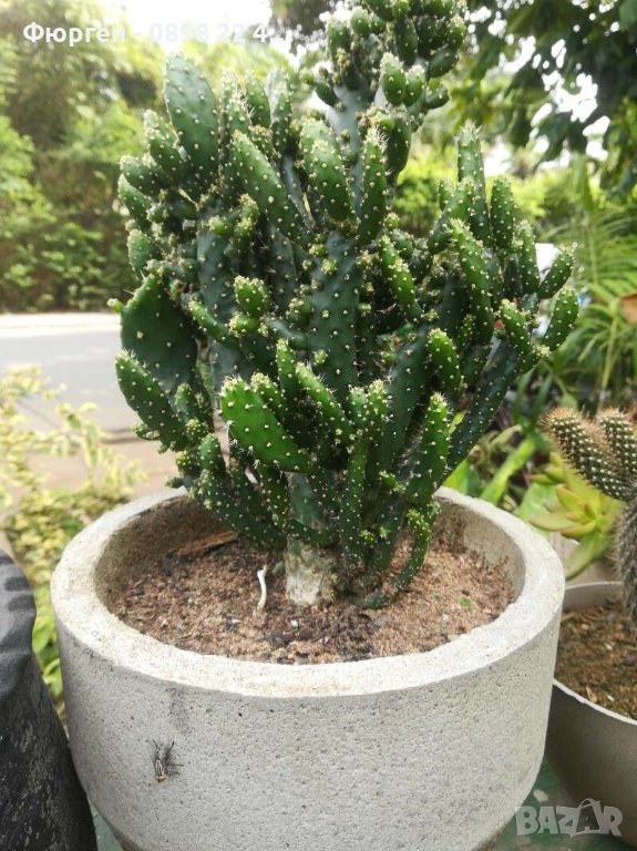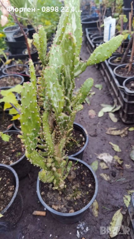 Екзотичен и впечатляващ кактус с уникална, деформирана форма, който привлича вниманието веднага. Opuntia monacantha Monstruosa е декоративен сорт, ценен заради нестандартния си растеж и свежо зелен цвят. Идеален избор за колекционери и любители на сукуленти.