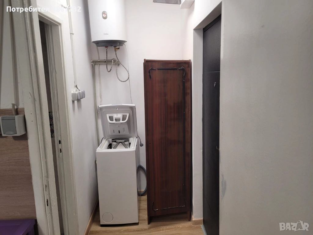 кухненска част с нови: кухненски шкафове, хладилник, пералня и бойлер.